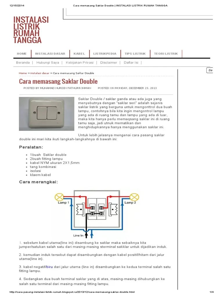 Mar 20, 2022 · gambar saklar+stopkontak. Kabel yang menuju stop kontak diambilkan dari percabangan fase yang menuju saklar. Mar 30, 2022 · video ini tentang pemasangan saklar tunggal dan cara penyambungan kabel di box terminal, kalian bisa coba dirumah sendiri untuk pemasangan saklar sederhana i. Cara memasang saklar & stop kontak (menyambungkan kabel listrik ke saklar) cara memasang saklar & stopkontak 2 kabel dan 3 kabel. Jadi tujuan kita adalah menyambung atau merangkai kabel saat instalasi saklar yang didesaini sepaket dengan stop kontak, kemudian menyambungkannya juga ke bagian lampu yang akan menyala dan …